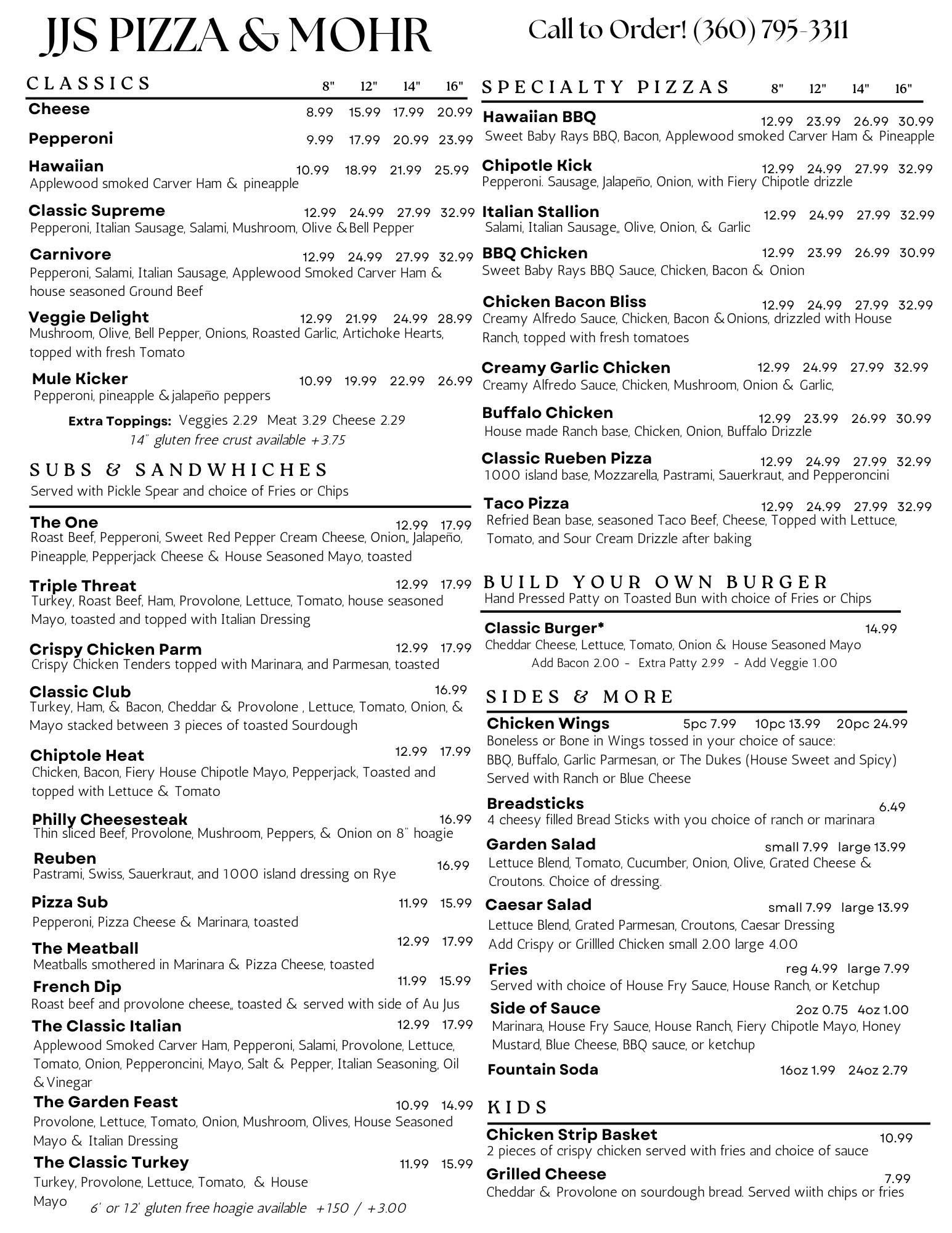 Let us satisfy that craving. We offer hand pressed monster Burgers, Grinders, Salads and of course everyone’s favorite, Pizza!